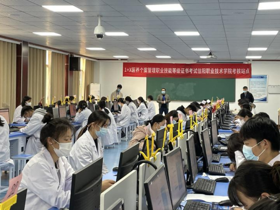 为贯彻《国务院关于印发国家职业教育改革实施方案的通知》《教育部等四部门印发关于在院校实施“学历证书+若干职业技能等级证书”制度试点方案的通知》精神,根据《信阳职业技术学院1+X证书制定试点工作方案》的要求及工作安排,我院于11月26日,举行了第一批医养个案管理职业技能等级证书(中级)考试考核工作。21级临床医学、中医学、护理学专业共65名学生参加本次考试。