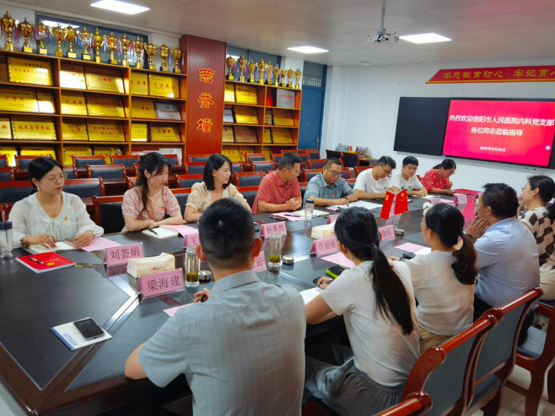 为促进党建交流、深化医教协同,推动党建与业务融合发展,2025年6月25日下午,信阳市人民医院内科党支部与信阳职业技术学院精品酒店舔比视频教工党支部在精品酒店舔比视频二楼党员之家开展党建工作交流研讨会。精品酒店舔比视频党总支书记章涵、信阳市人民医院内科党支部书记张刚、双方党支部支委委员及部分党员代表参加研讨会。会议由精品酒店舔比视频教工党支部书记吕晓龙主持。