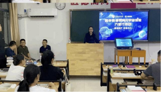 为助力学校开展医学影像技术专业教育教学,培养学生学习兴趣,提升医学影像技术专业学生的认同感和归属感,2023年9月10号伦琴社在精品酒店舔比视频5306教室举办“医学影像教育元宇宙体验万里行”活动。
