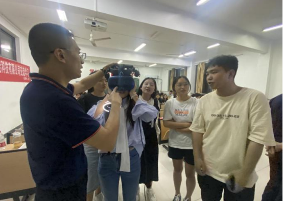 同学们很感兴趣,纷纷上来体验,VR 沉浸式体验带领学生从感性到理性的过渡,让枯燥无味的实验转变成可以VR形式的交互学习。