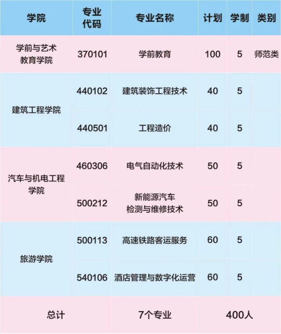 3、我校五年一贯制招生总计划400人,招生专业计划如下: