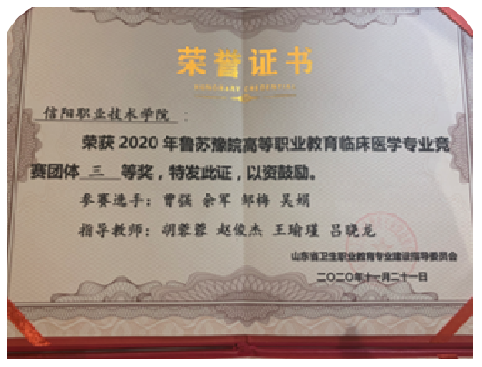 指导临床专业学生参加鲁苏豫皖高等职业教育临床实践技能四省联赛,获团队三等奖