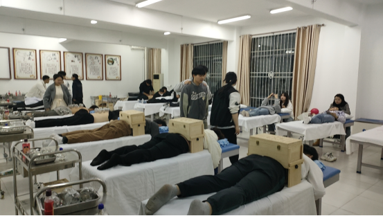 信阳职业技术学院中医学专业学生为同学拔火罐防流感!