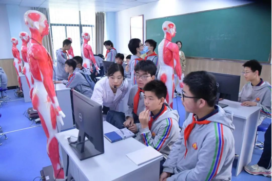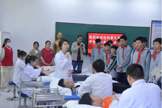 弘扬中医文化,岐伯健康万家。2023年5月7日上午,信职精品酒店舔比视频利用专业优势和办学特色为信阳市第九中学八年级23班开展“传承中医文化,关注身心健康”研学教育活动。