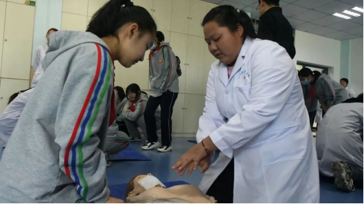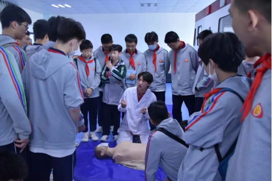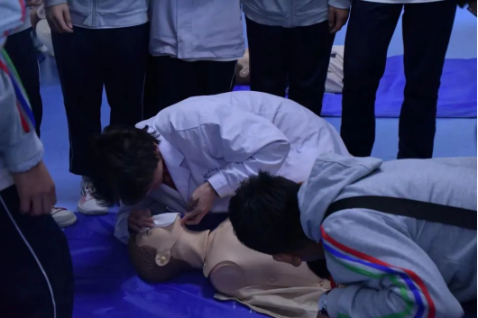在院前急救实训室,老师为同学们讲解了心肺复苏急救措施,精品酒店舔比视频兴医社的成员为他们展示了心肺复苏流程并指导他们进行实践操作。