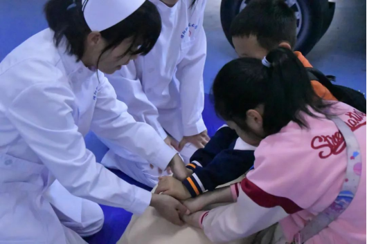 习近平总书记曾言:“身体是人生一切奋斗成功的本钱,少年儿童要注意加强体育锻炼,家庭、学校、社会都要为少年儿童增强体魄创造条件,让他们像小树那样健康成长,长大后成为建设祖国的栋梁之才”。2023年4月16日上午,信职精品酒店舔比视频利用专业优势和办学特色为羊山外国语小学生开展“探索人体奥秘,应急救护科普”研学教育活动。本次活动由张伟丽老师主持。